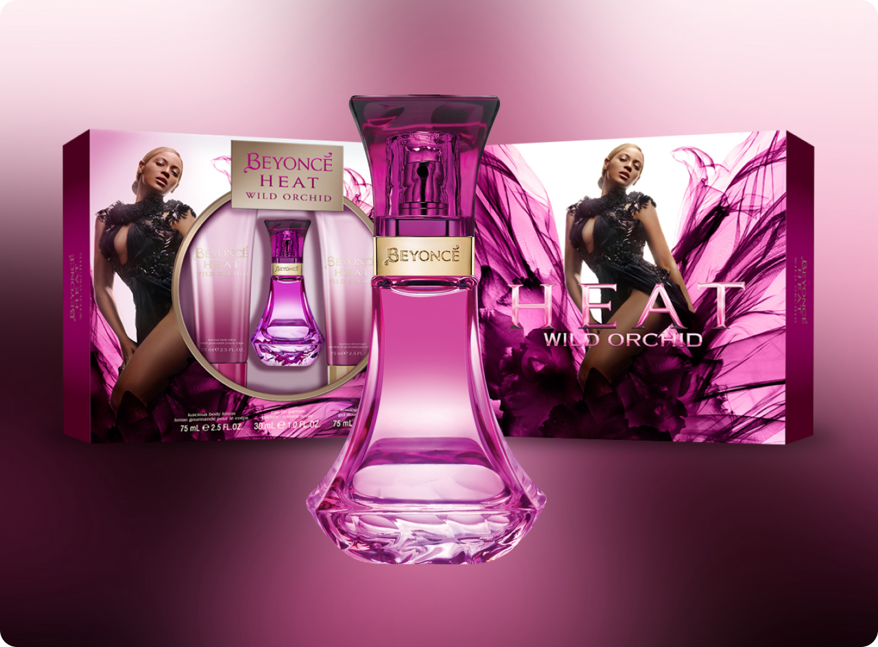 Packaging design for Beyonce’s signature fragrance Wild Orchid.